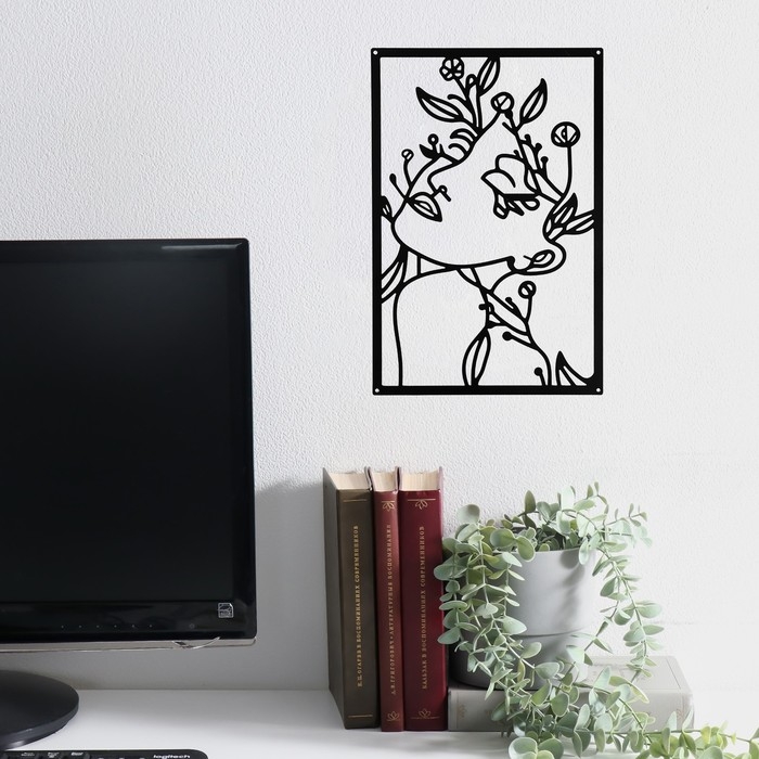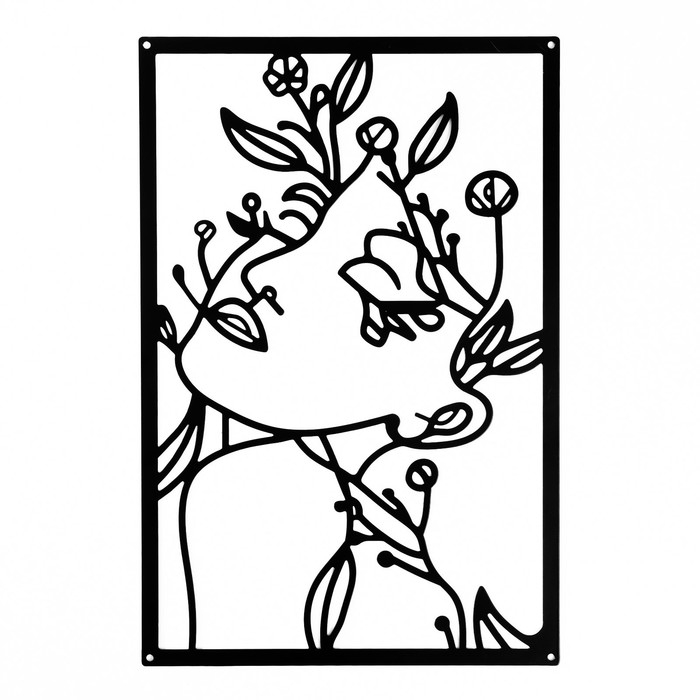Панно интерьерное металл "Абстракция. Девушка в цветах" чёрное 30х45 см