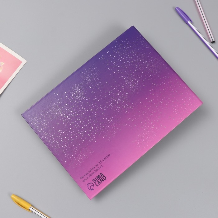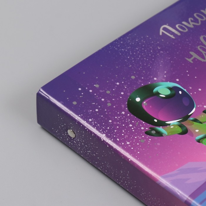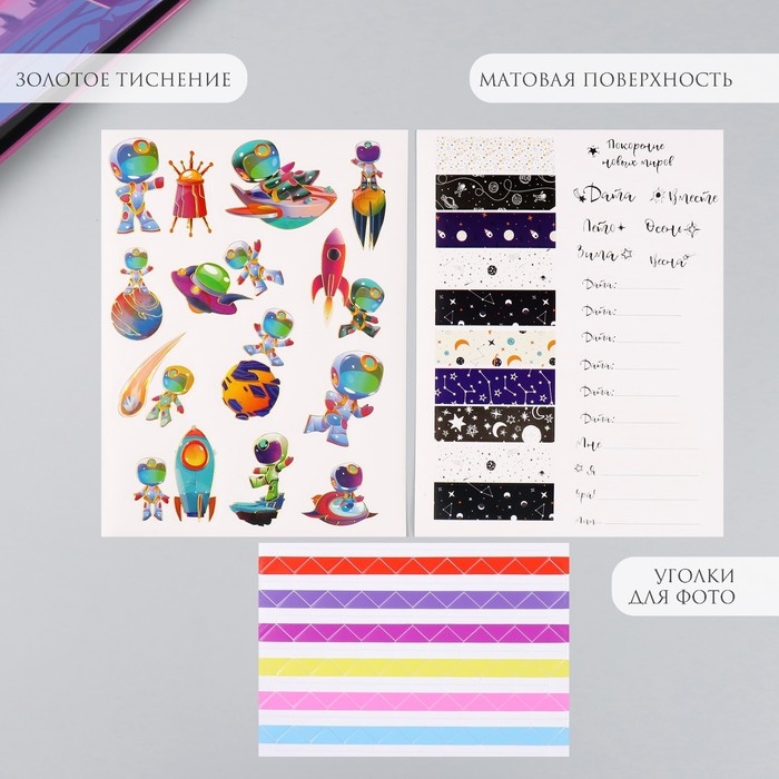 Фотоальбом 25 листов (наклейки+кольца) "Покорение новых миров" тиснение серебро 19х27х3 см