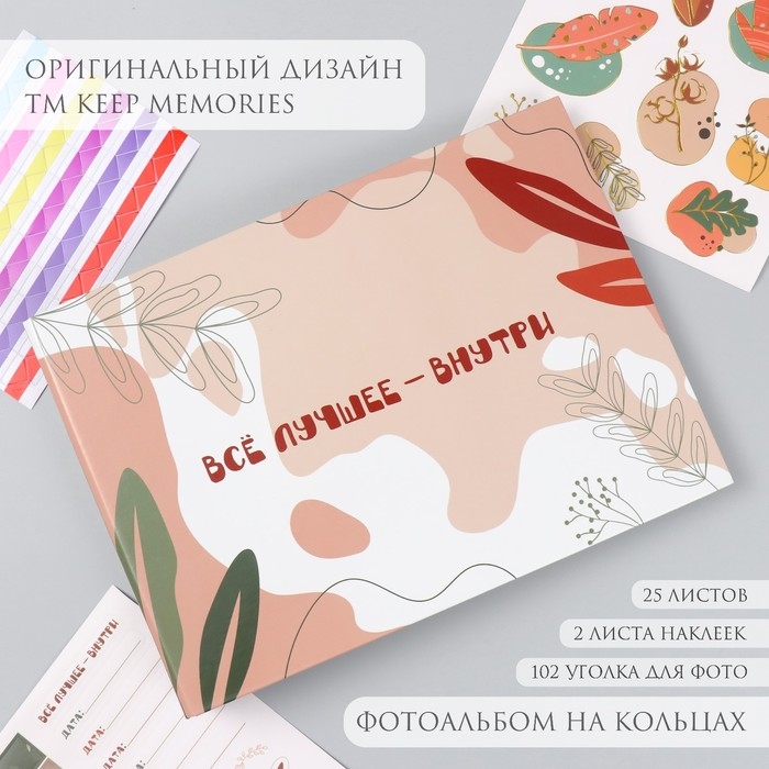 Фотоальбом 25 листов (наклейки+кольца) "Абстракция. Всё лучшее внутри" 19х27х3 см