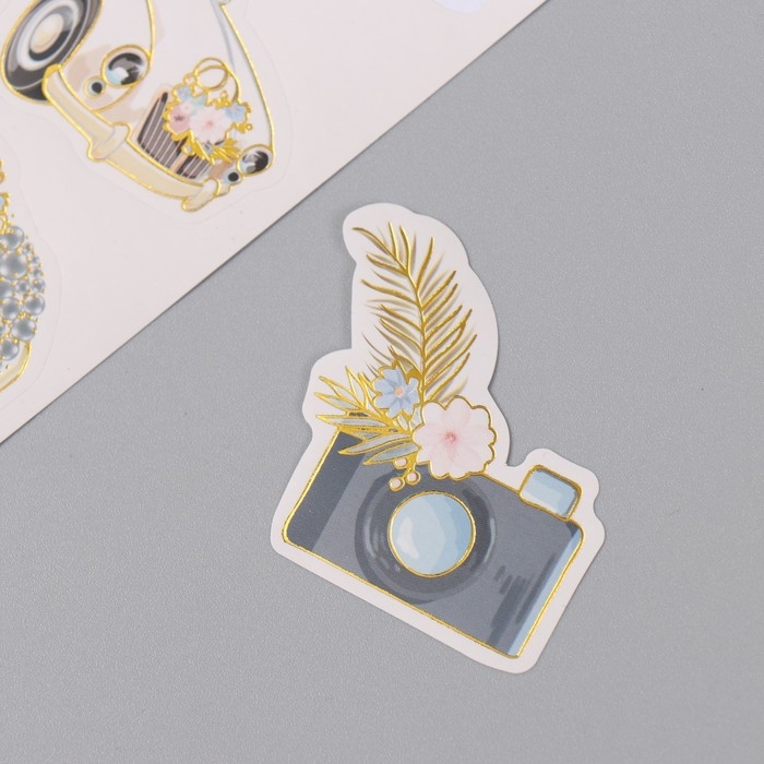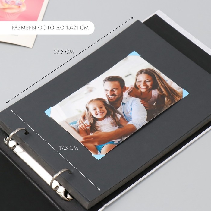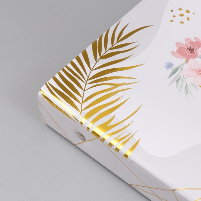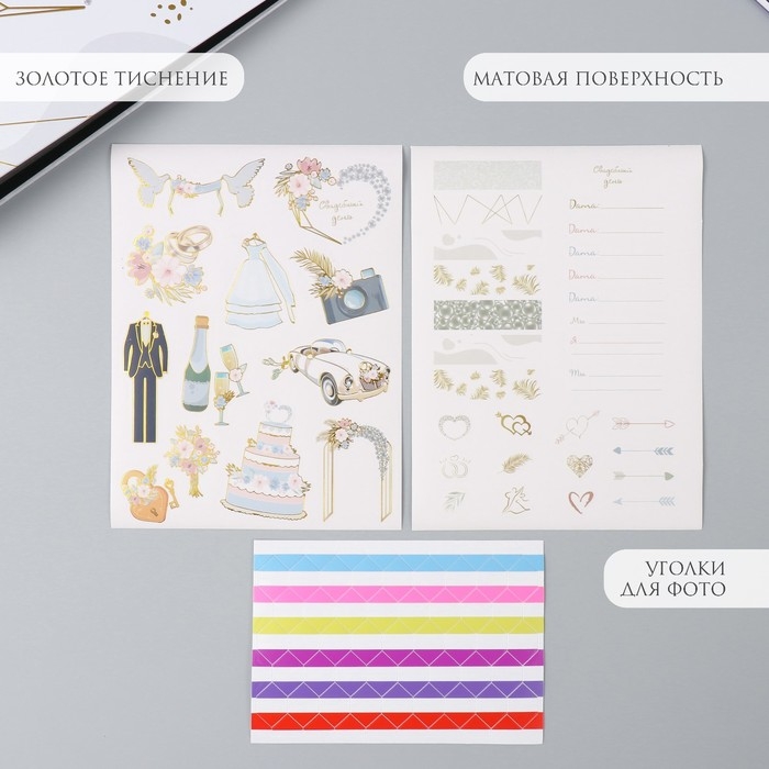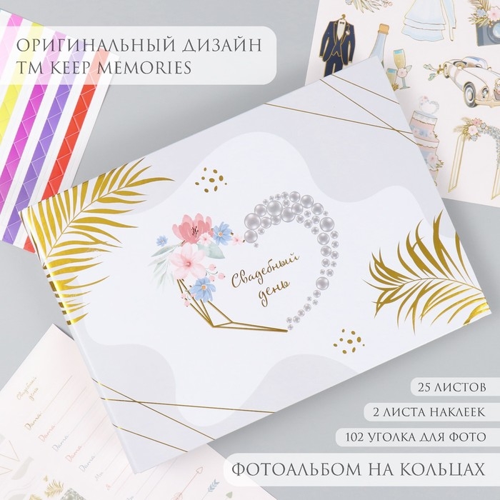 Фотоальбом 25 листов (наклейки+кольца) "Свадебный день" тиснение золото 19х27х3 см