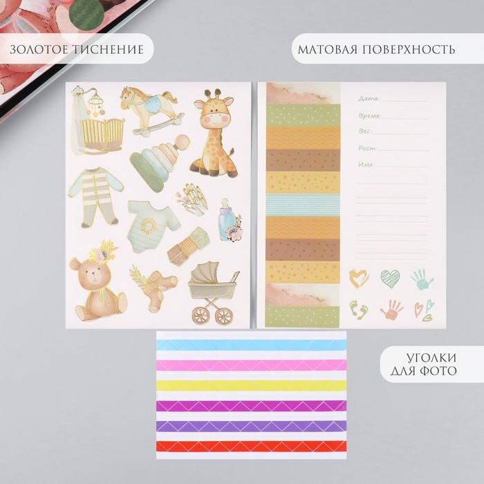 Фотоальбом 25 листов (наклейки+кольца) "Для малыша. Первый альбом" 19х27х3 см