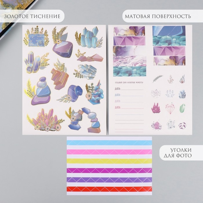 Фотоальбом 25 листов (наклейки+кольца) "Создавай особенные моменты" золото 19х27х3 см