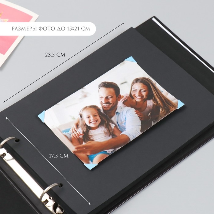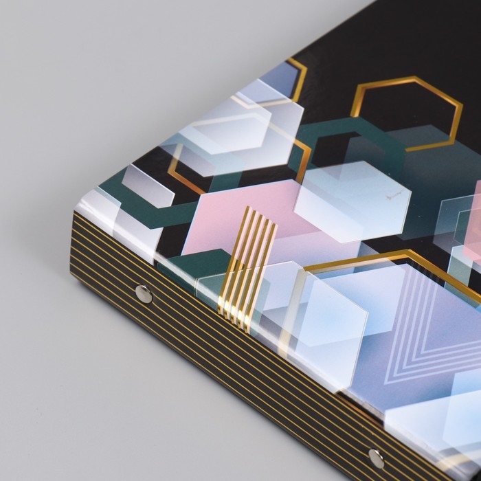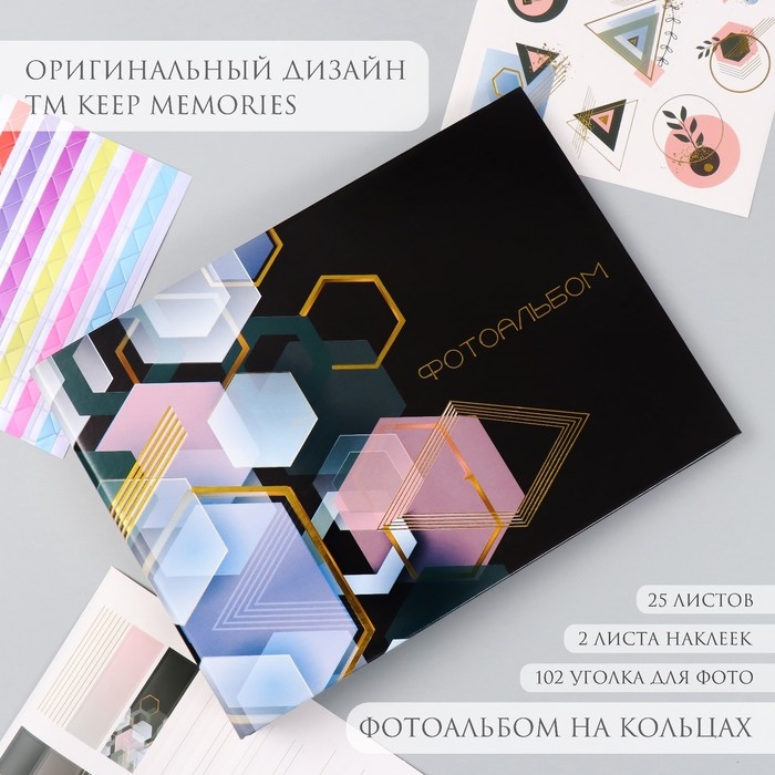 Фотоальбом 25 листов (наклейки+кольца) "Геометрия" тиснение золото 19х27х3 см
