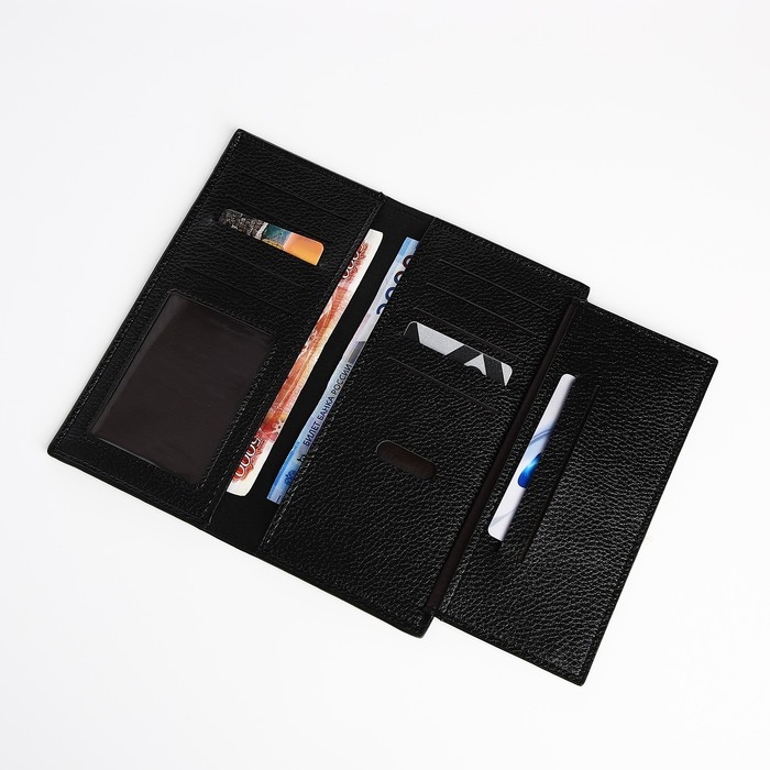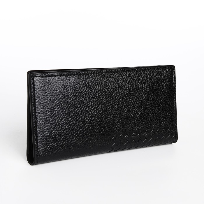 Портмоне мужское без застежки, отдел для купюр, для карт, для монет, цвет чёрный