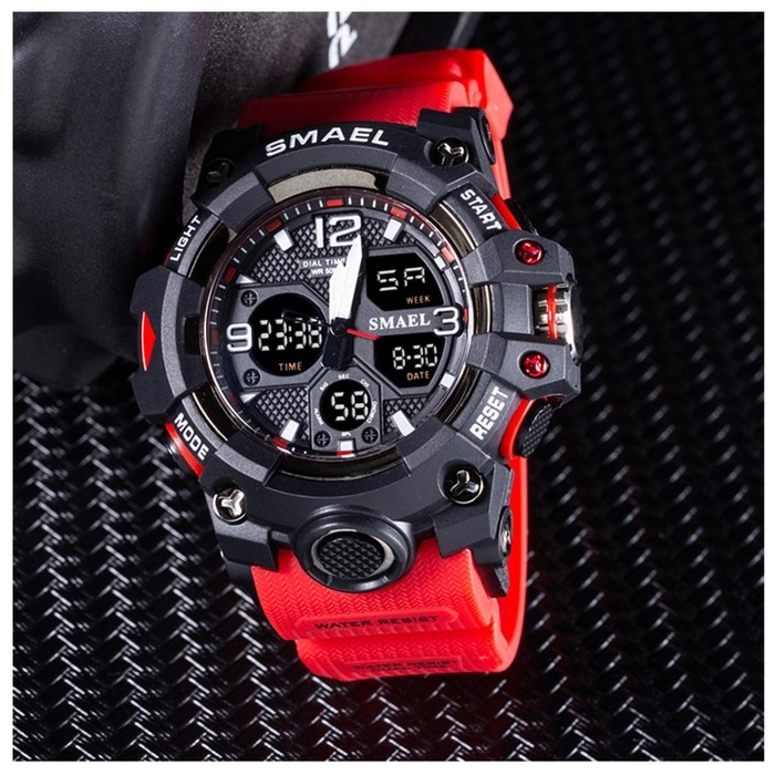 Часы наручные электронные, с будильником, d-5.6 см, ремешок l-26 см, 5 ATM, красный ремешок 974230