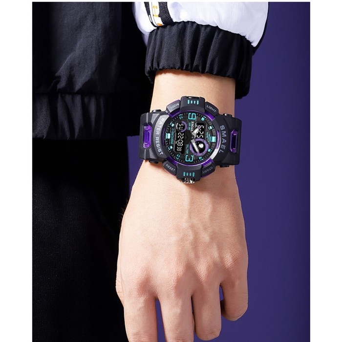 Часы наручные электронные, с будильником, d-5.3 см, ремешок l-27 см, 5 ATM, светящиеся