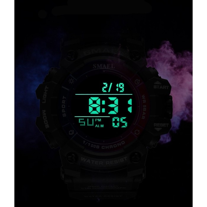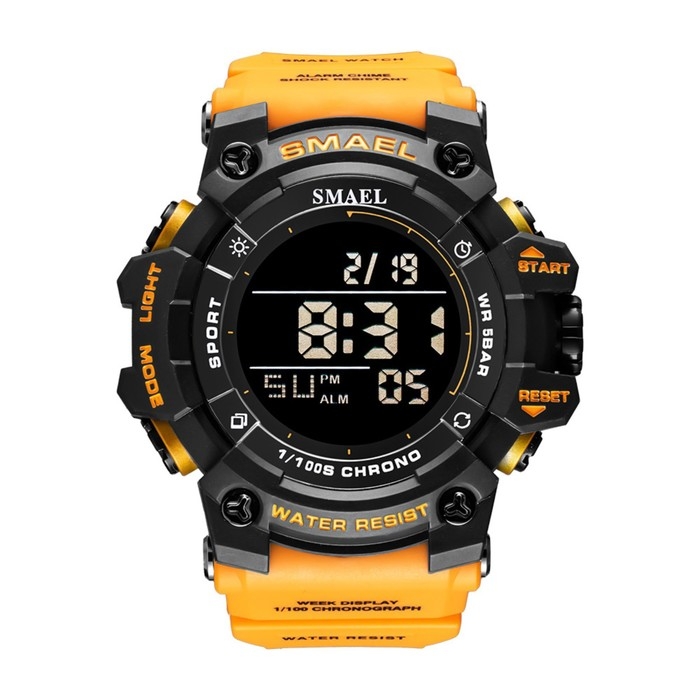 Часы наручные электронные, с будильником, d-5.9 см, ремешок l-26 см, 5 ATM, желтый ремешок