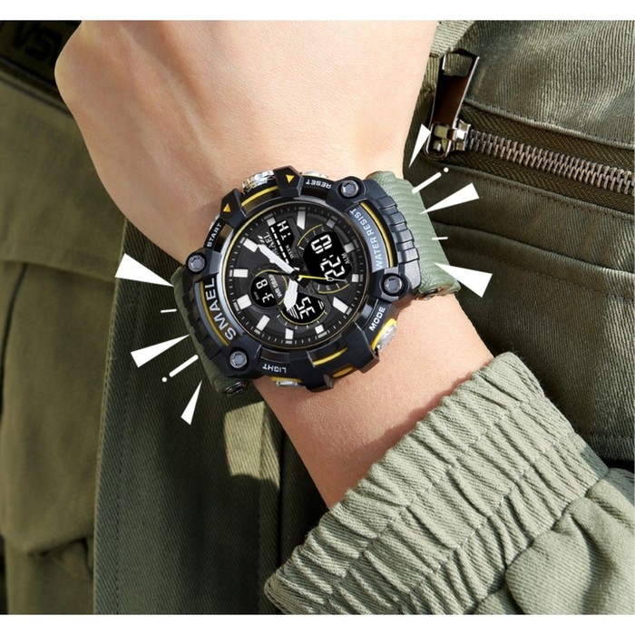 Часы наручные электронные, с будильником, d-5.8 см, ремешок l-26 см, 5 ATM, зеленый ремешок 974232