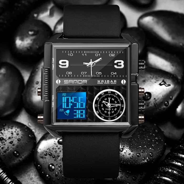 Часы наручные электронные, d-4.1 см, будильник, календарь, водонепроницаемые, черные