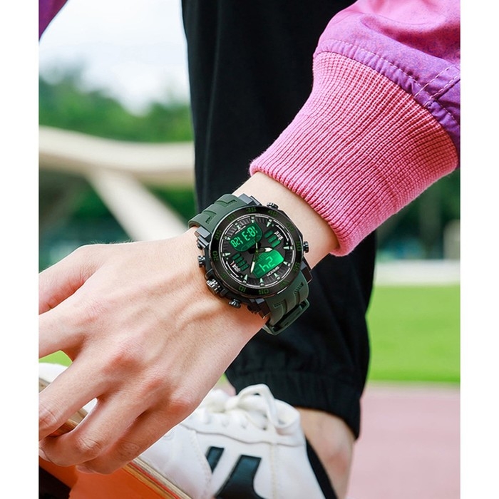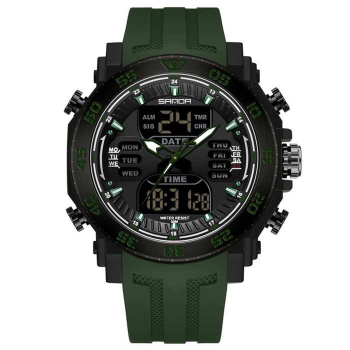 Часы наручные электронные, d-5.3, будильник, календарь подсвтека, ремешок силикон, зеленые 985523