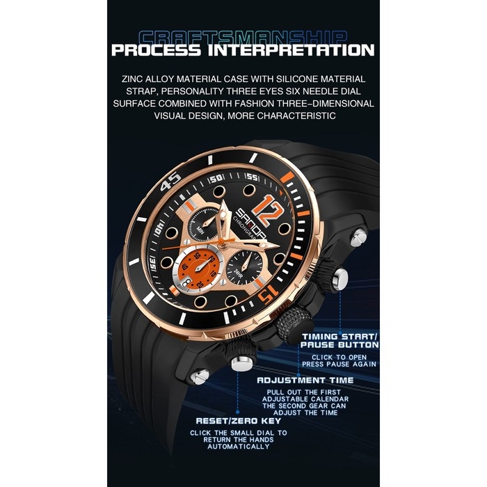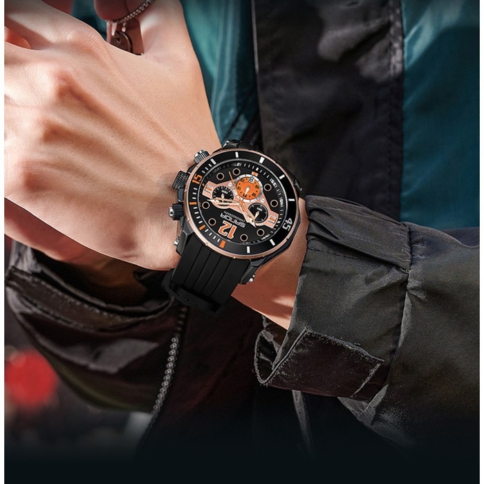 Часы наручные, d-5.1 см, водонепроницаемые, хронограф, ремешок силикон, светящиеся, черные