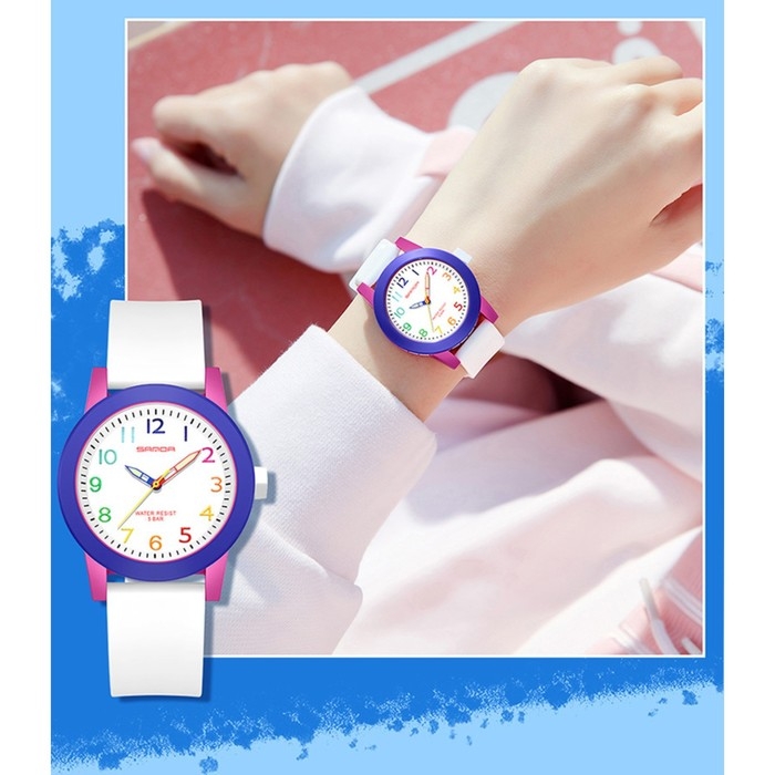 Часы наручные кварцевые детские, d-3.4 см, водонепроницаемые, светящиеся, ремешок силикон, белые 9