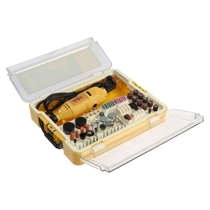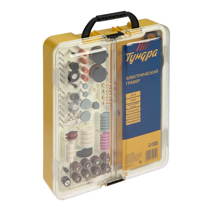 Гравер электрический ТУНДРА, 135 Вт, 8000-35000 об/мин, цанга 3.2 мм, 5 ск., 118 предметов