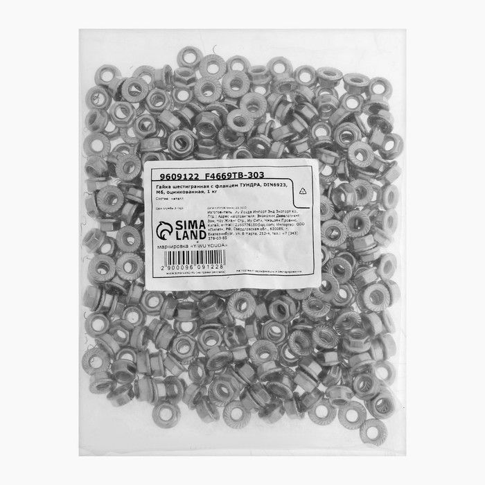 Гайка ТУНДРА, с фланцем, DIN 6923, класс прочности 8, оцинкованная, М6, 1 кг