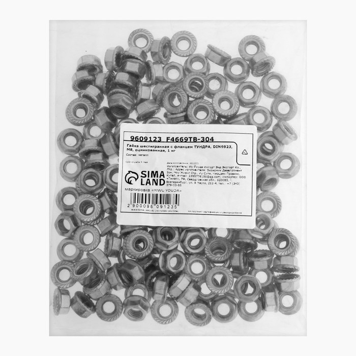 Гайка ТУНДРА, с фланцем, DIN 6923, класс прочности 8, оцинкованная, М8, 1 кг
