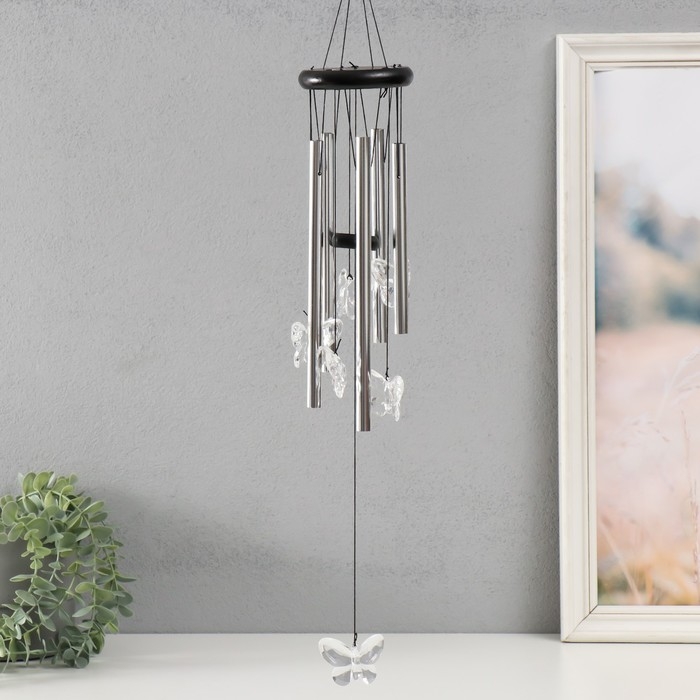 Музыка ветра металл, дерево "Хрустальные бабочки" 5 трубок 60х9х9 см