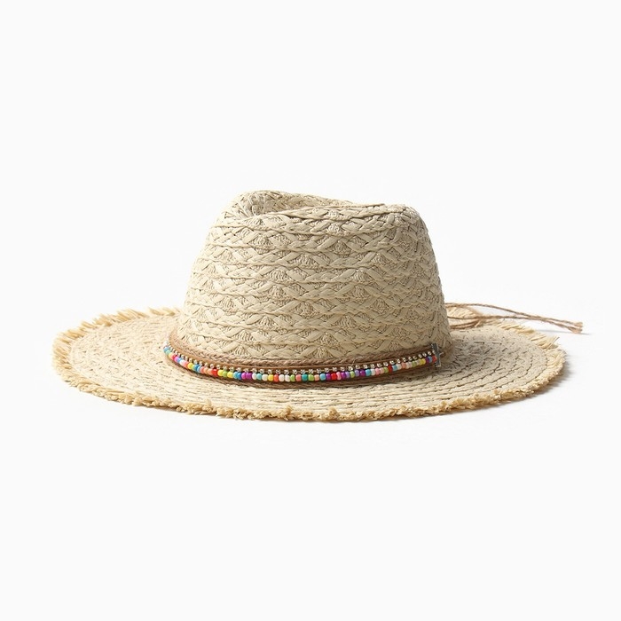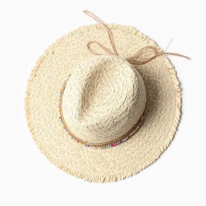 Шляпа женская летняя с бусами MINAKU цв.бежевый, размер 56-58
