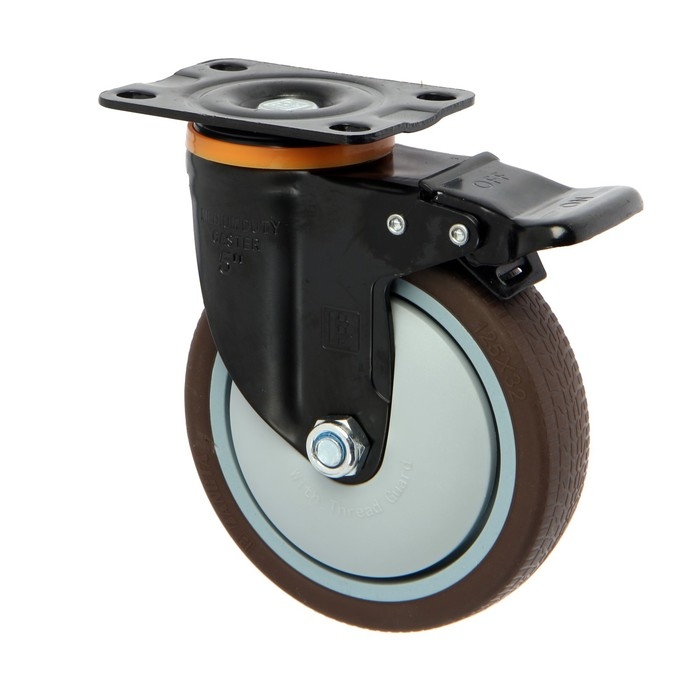 Колесо мебельное CAPPIO d=125,на площадке,со стопором,поворотное, покрытие TPR