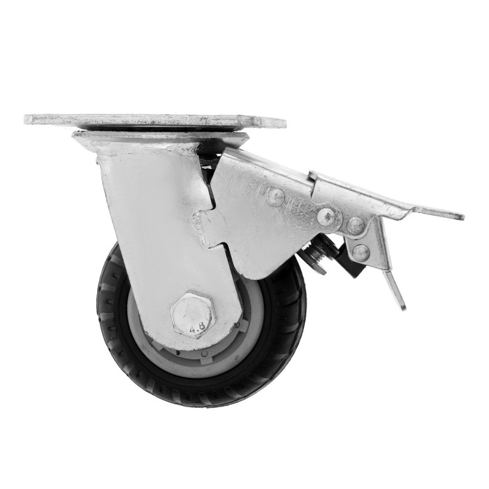 Колесо для транспортных тележек поворотное, d=100, на площадке, со стопором , покрытие резина 9917