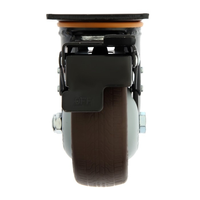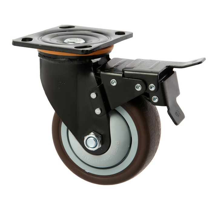 Колесо для трансп. тележек поворотное ТУНДРА, d=125 мм, на пдощадке, со стопорм, покрытие TPR 9917