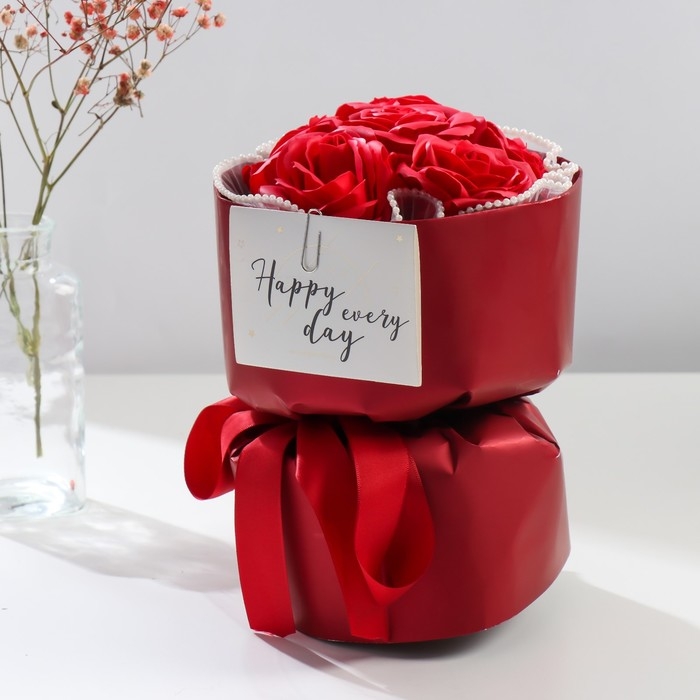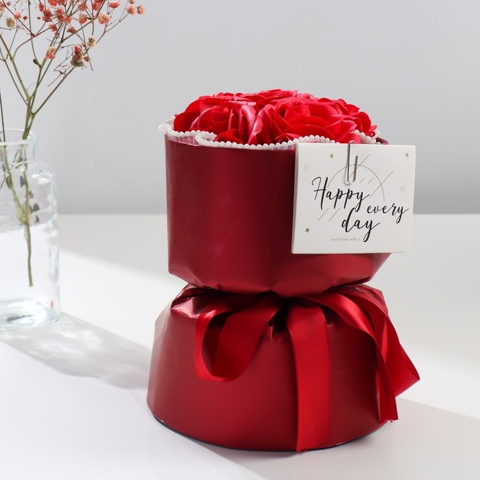 Букет из мыльных лепестков "Алые розы" 17х17х27 см