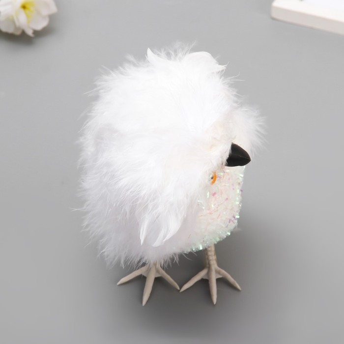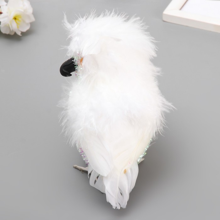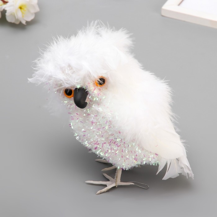 Пушистик "Совенок в блестках" белый 9х11х16 см