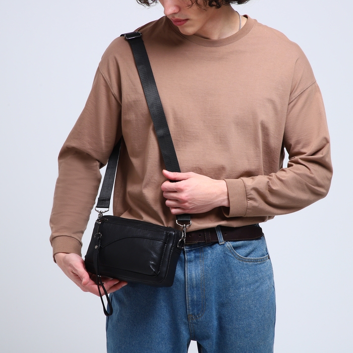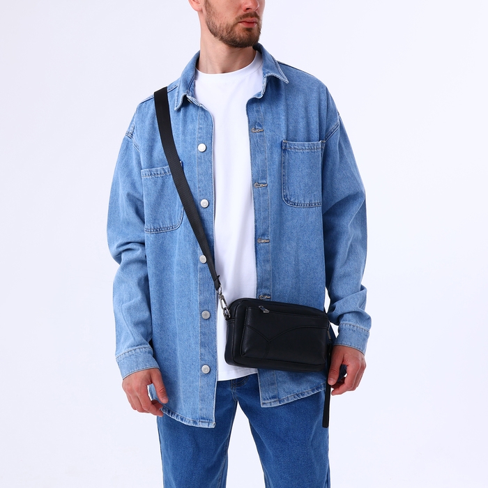 Сумка мужская через плечо, искусственная кожа, цвет чёрный