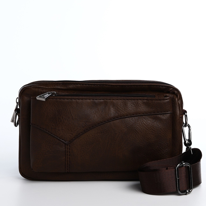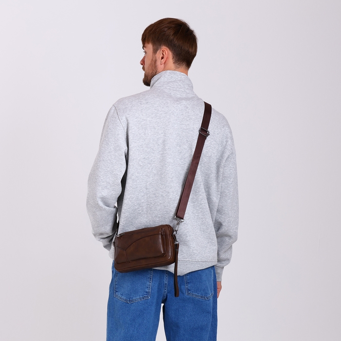 Сумка мужская через плечо, искусственная кожа, цвет коричневый
