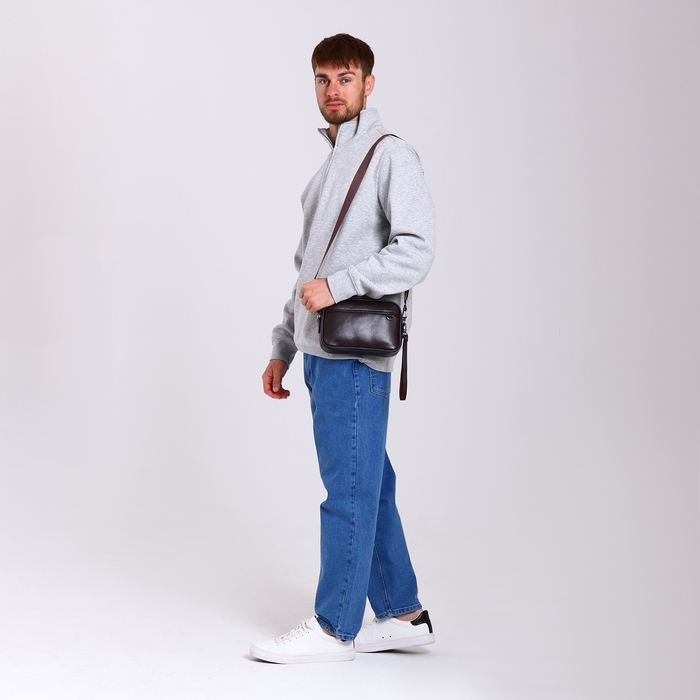 Сумка мужская через плечо, искусственная кожа, цвет коричневый