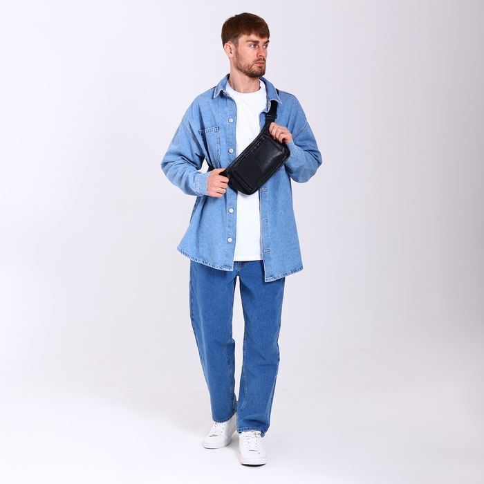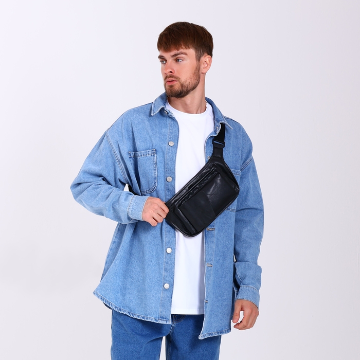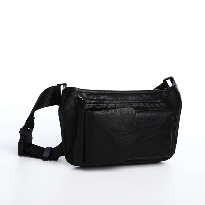 Поясная сумка на молнии, 3 наружных кармана, цвет чёрный