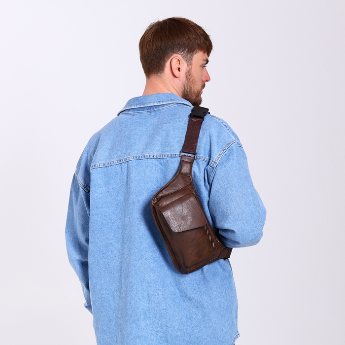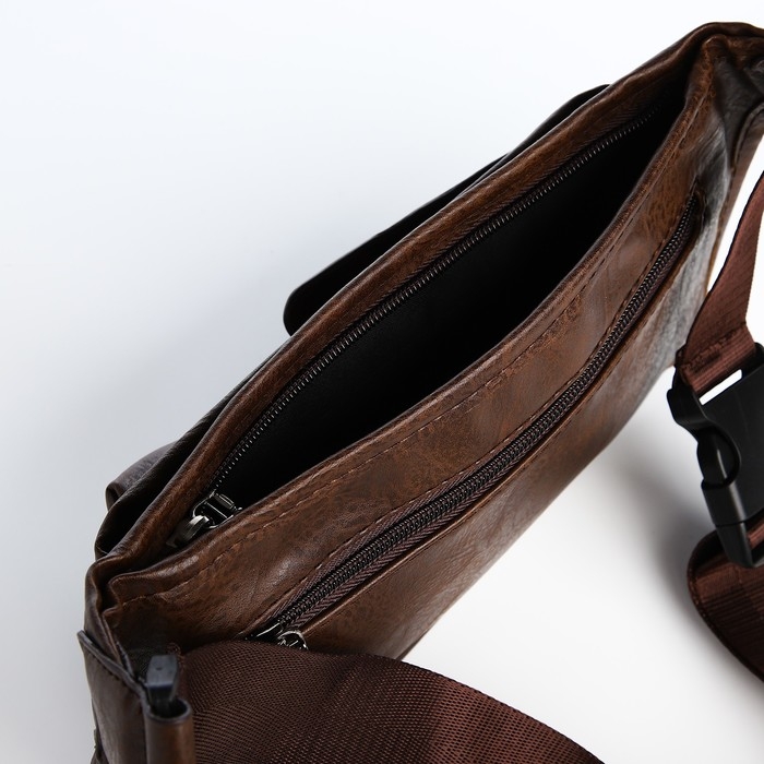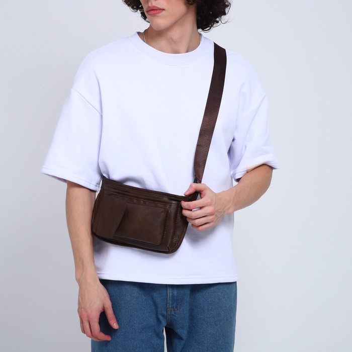 Поясная сумка на молнии, 3 наружных кармана, цвет коричневый