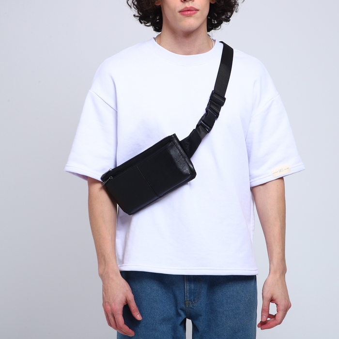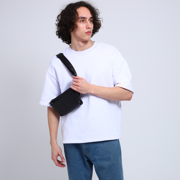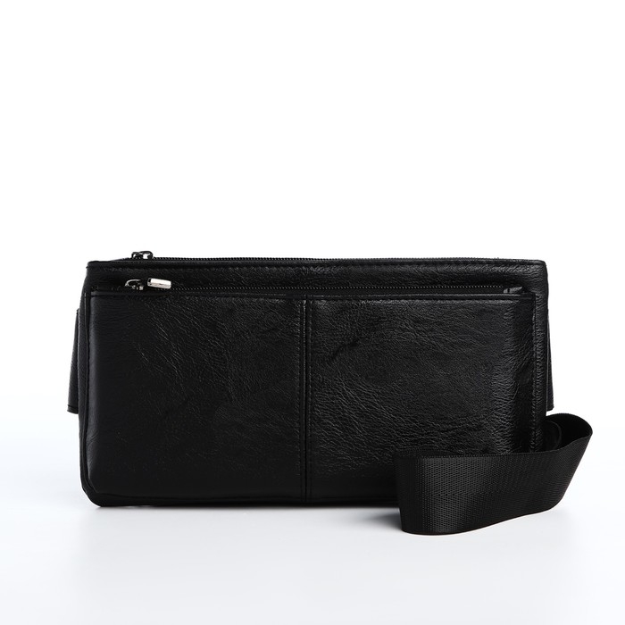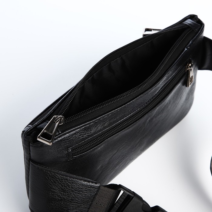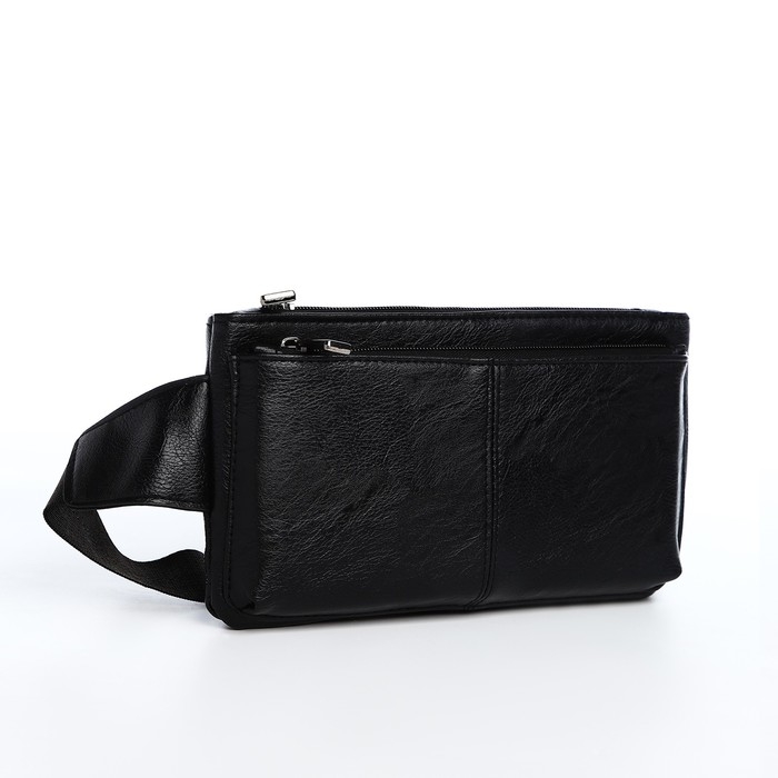 Сумка поясная на молнии, 2 наружных кармана, цвет чёрный