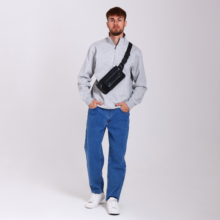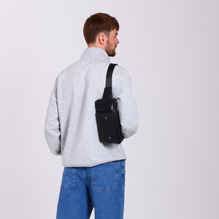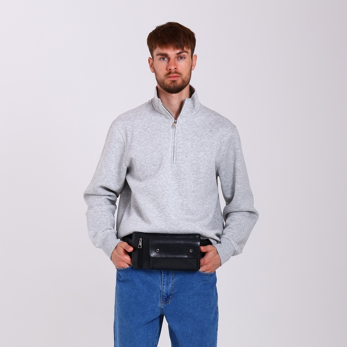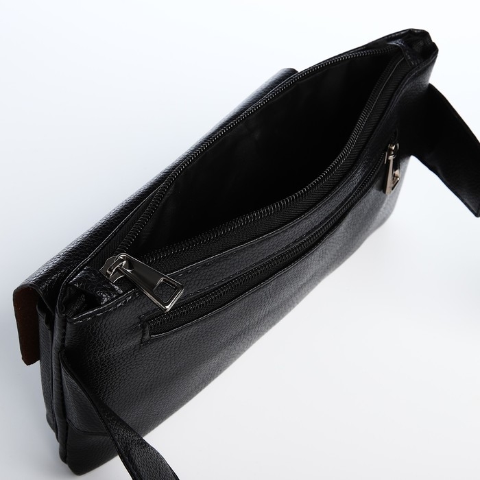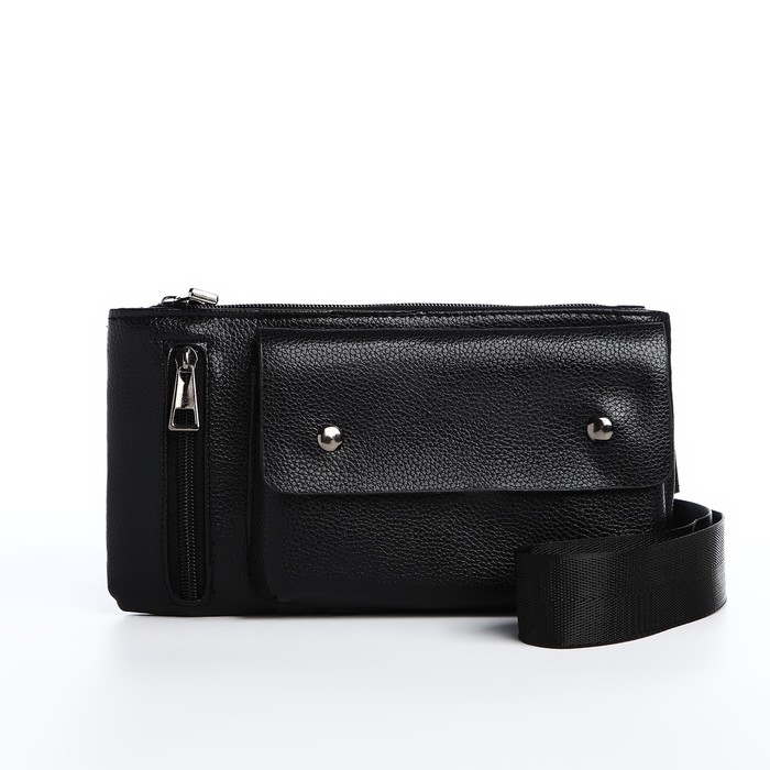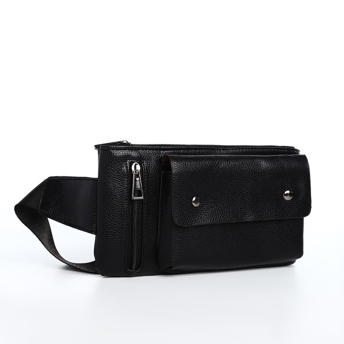 Сумка поясная на молнии, 2 наружных кармана, цвет чёрный