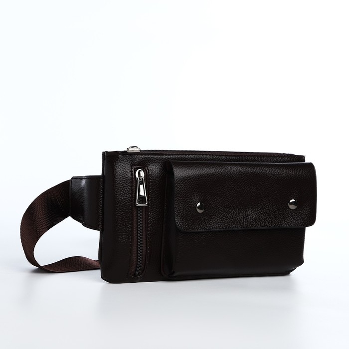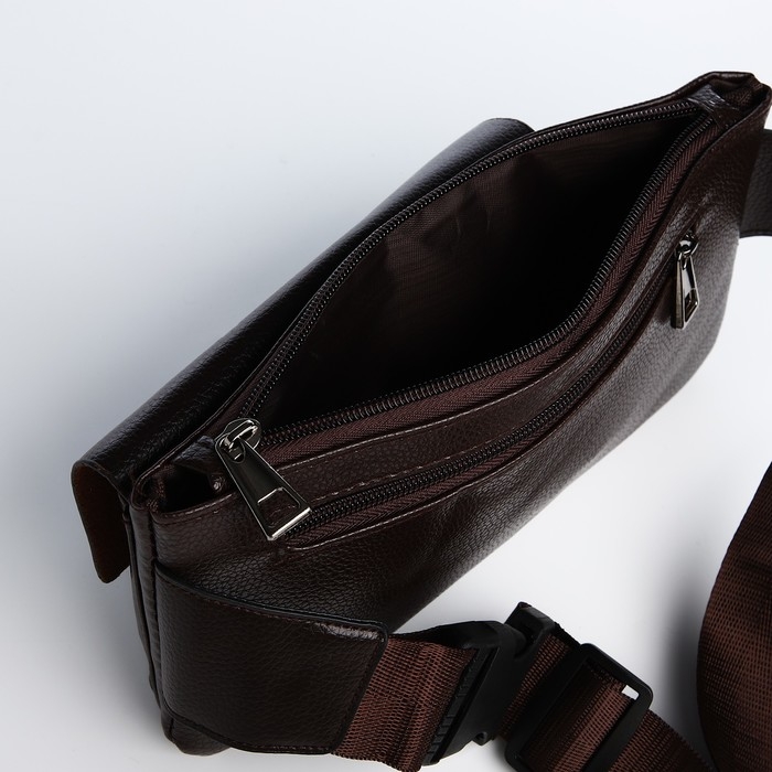 Сумка поясная на молнии, 2 наружных кармана, цвет коричневый