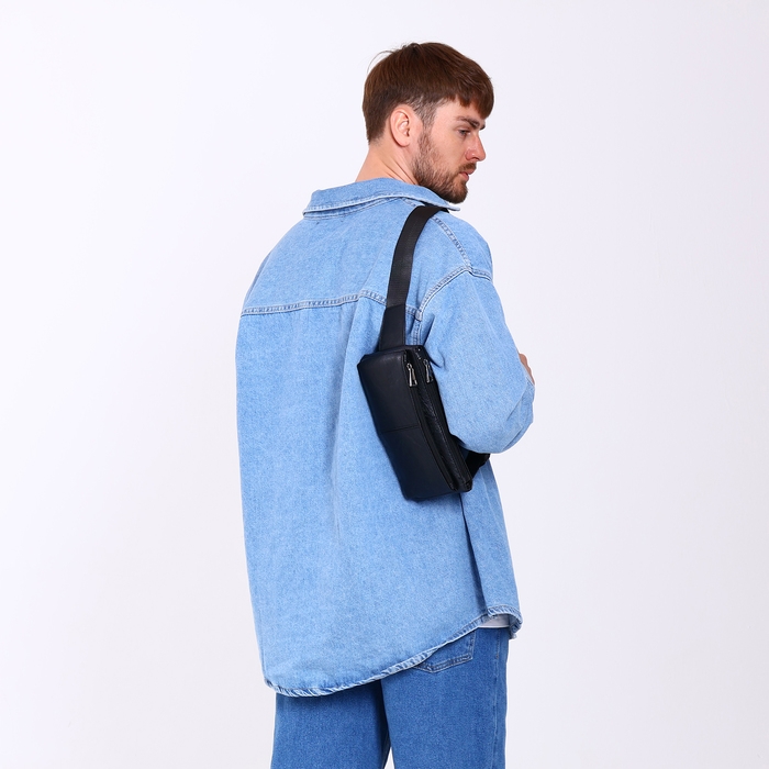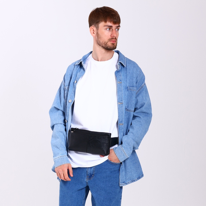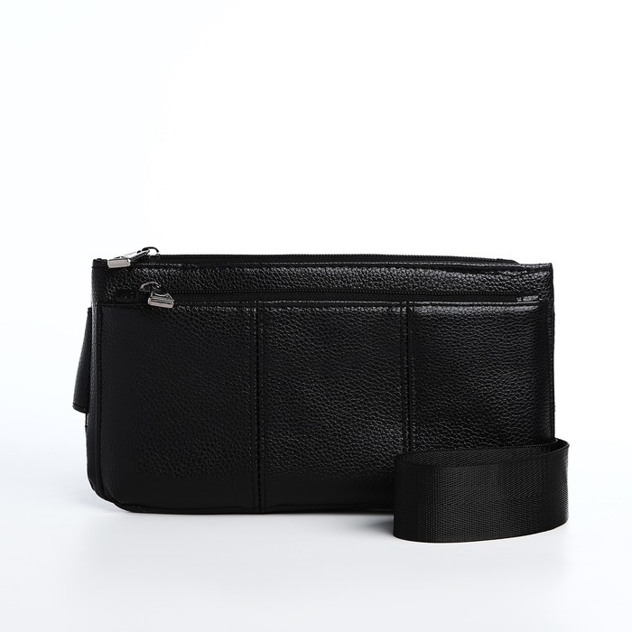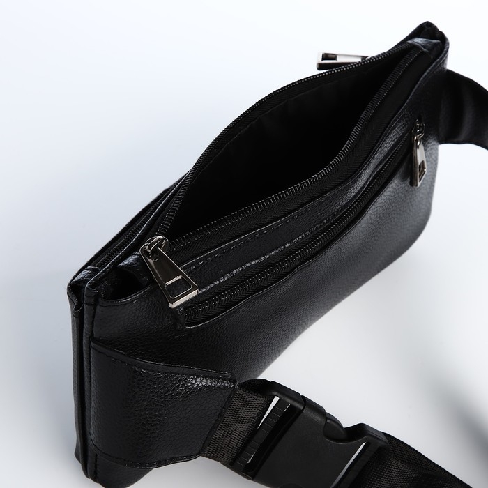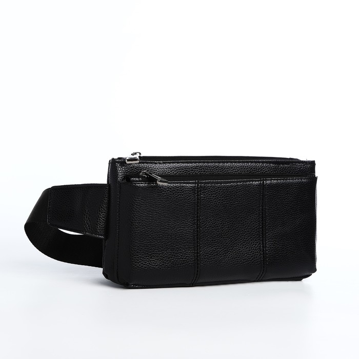 Сумка поясная на молнии, 2 наружных кармана, цвет чёрный