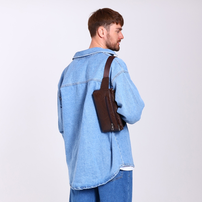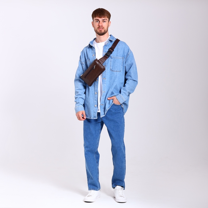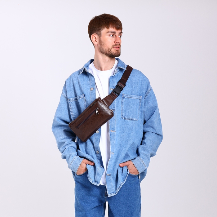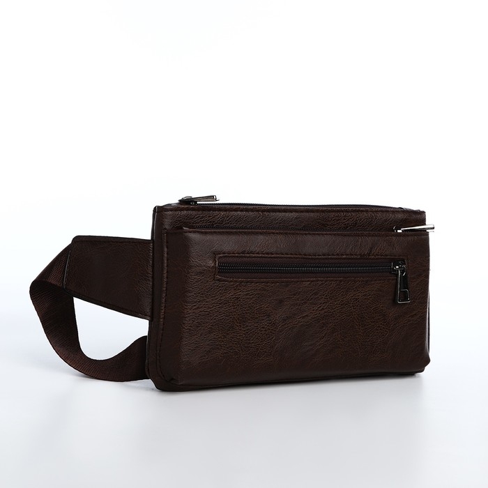 Сумка поясная на молнии, 3 наружных кармана, цвет коричневый