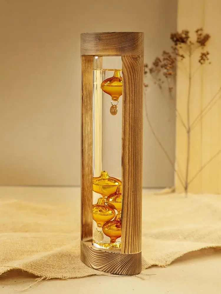 Любопытный термометр, изобретенный великим Галилео Галилеем, который первым обнаружил, что плотность жидкости увеличивается при снижении температуры и уменьшается при ее повышении.