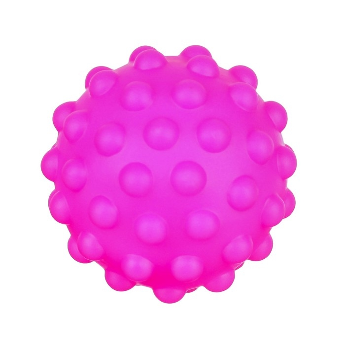 Мячики с рельефной массажной поверхностью способствуют развитию мелкой моторики и тактильных ощущений. Давление на фактурную поверхность мячиков стимулирует и благоприятно воздействует на нервные окончания, ответственные за большинство процессов в организме. Шарики имеют яркие цвета, которые способствуют развитию зрения, а пищалка внутри развивает слуховое восприятие.