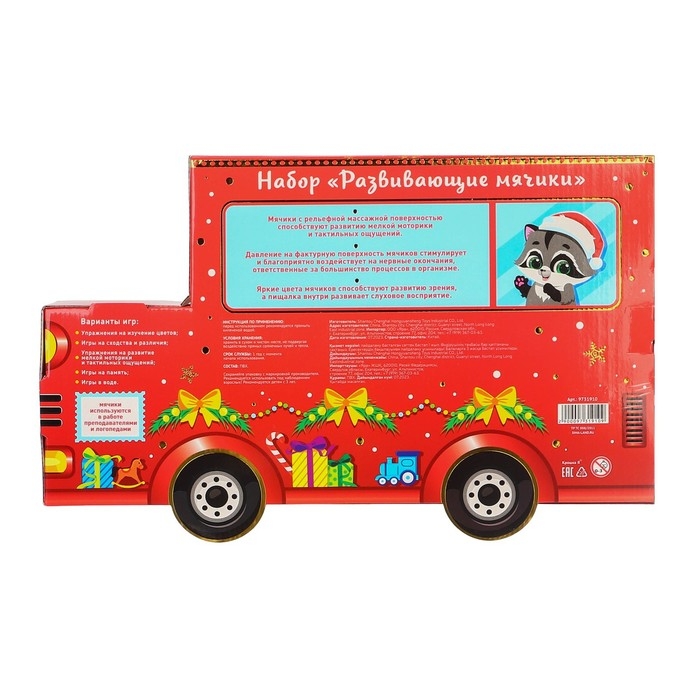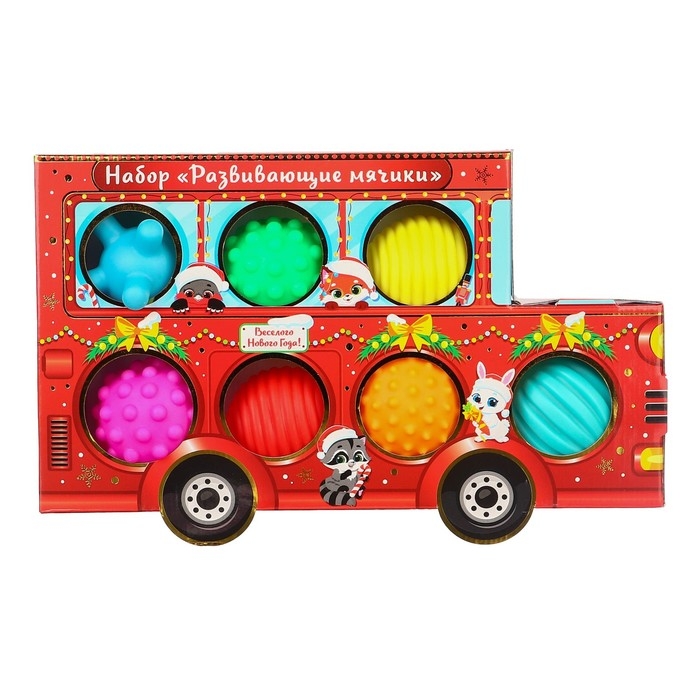Подарочный набор развивающих тактильных мячиков «Машина Деда Мороза», 7 шт, новогодняя упаковка, Крошка Я