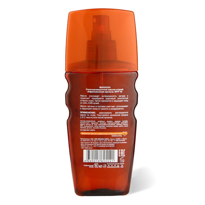 Масло-спрей активатор загара Биокон SPF-10 с аргановым маслом 99%, 160 мл
