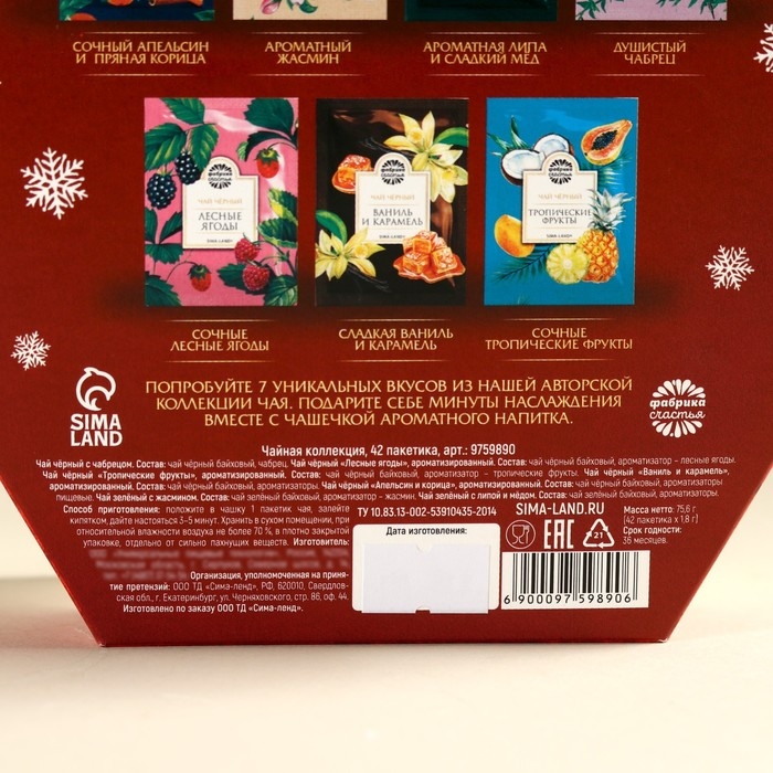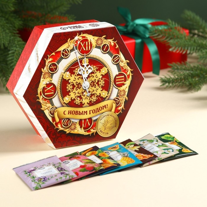 Новый год! Чайная коллекция «Новогодние часы» ассорти, 75,6 г (42 пакетика х 1,8 г).