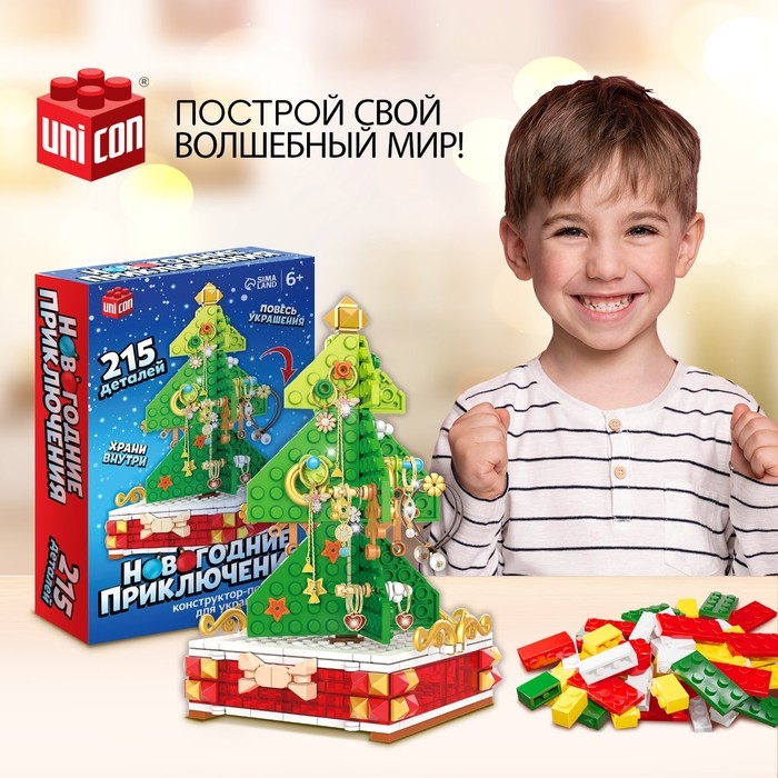 Маленькому любителю волшебства непременно понравится новогодний конструктор. С ним ребёнок не только разыграет праздничный сюжет, но и сможет придумать свои истории. Малыш соберёт ёлку своей мечты и декорирует её на свой вкус украшениями, которые входят в набор.