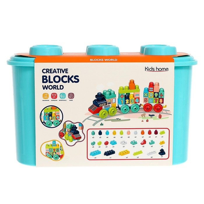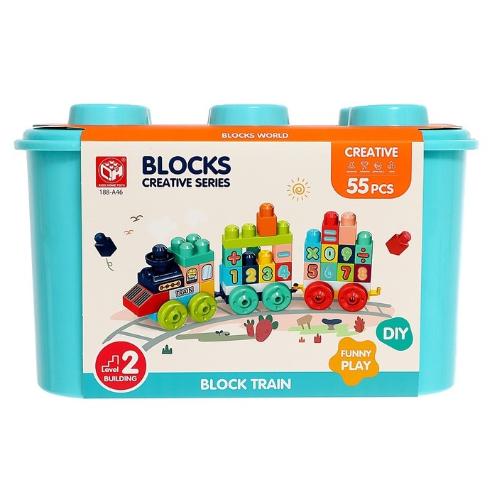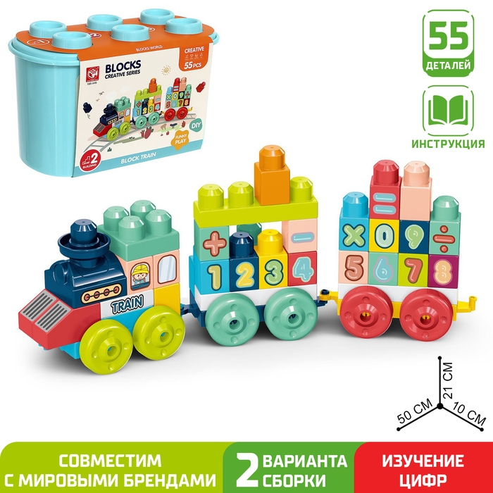 Конструктор в кейсе «Числовой поезд», 2 варианта сборки, 55 деталей, бирюзовый ящик