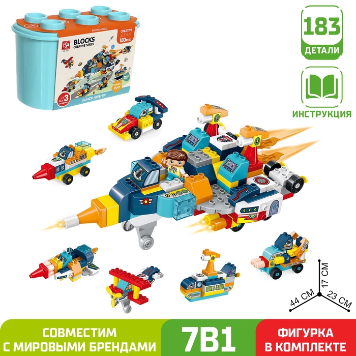 Конструктор «Транспорт», 7 вариантов сборки, 183 детали, кейс для хранения в комплекте