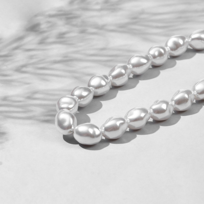 Бусины пластиковые на нити «Жемчуг» 8×6 мм, (набор 190 шт.), цвет белый