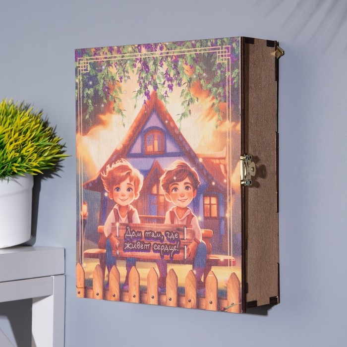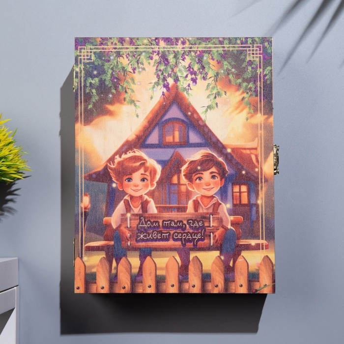Ключница шкатулка "Дом там, где сердце!" дети, дом, 22х17х6 см