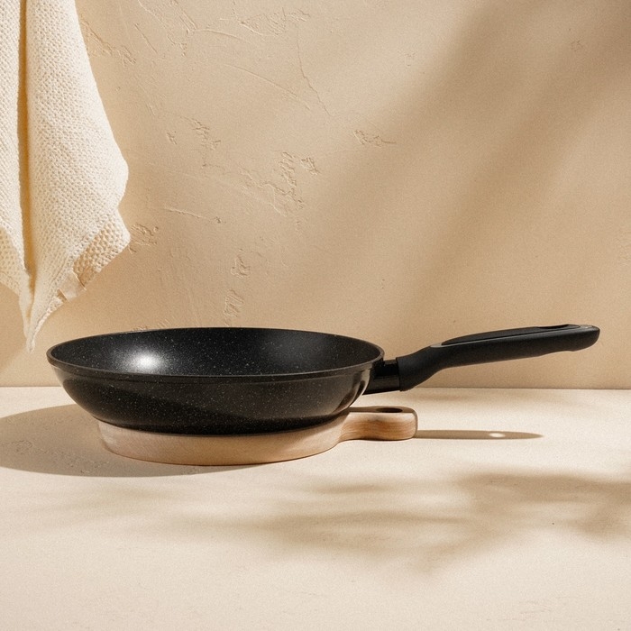 Сковорода Доляна Promo, d=22 см, h= 5 см, пластиковая ручка, антипригарное покрытие, цвет бордовый