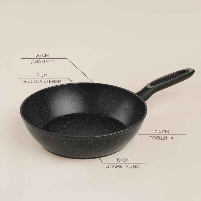 Сковорода алюминиевая с высоким бортом SL Home, d=26 см, h=7 см, антипригарное покрытие, индукция, цвет чёрный
