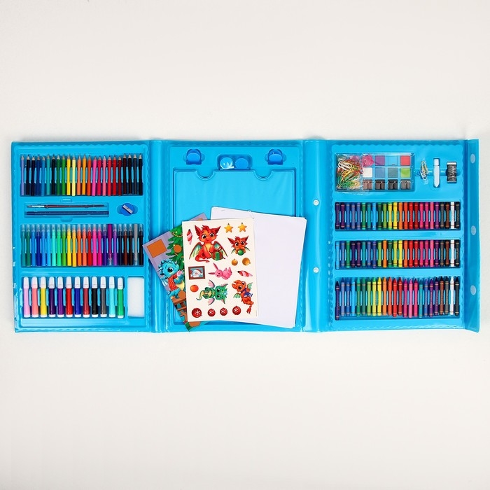 Такой набор станет настоящим подарком для художника. Рисуйте, создавайте шедевры с помощью маркеров, восковых мелков, красок и многого другого!