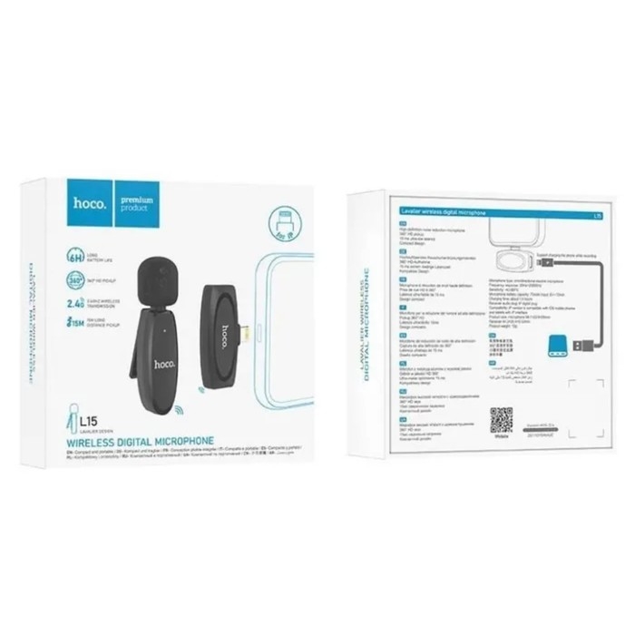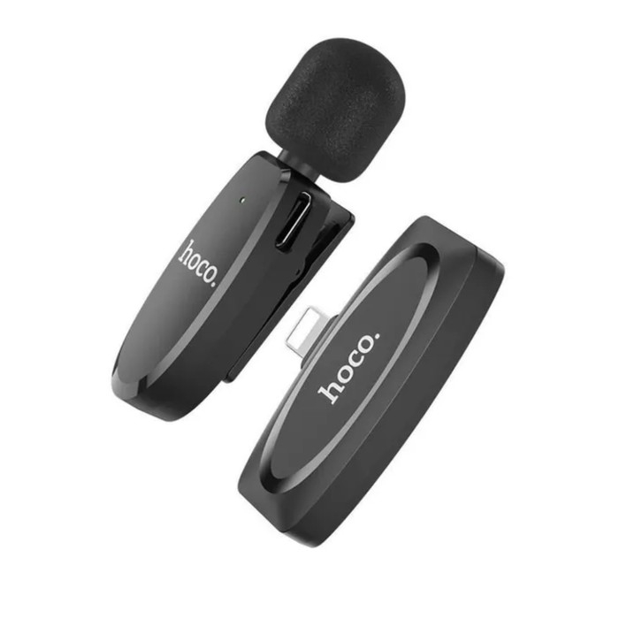 Портативный микрофон Hoco L15, беспроводной, 70 мАч, Lightning, чёрный